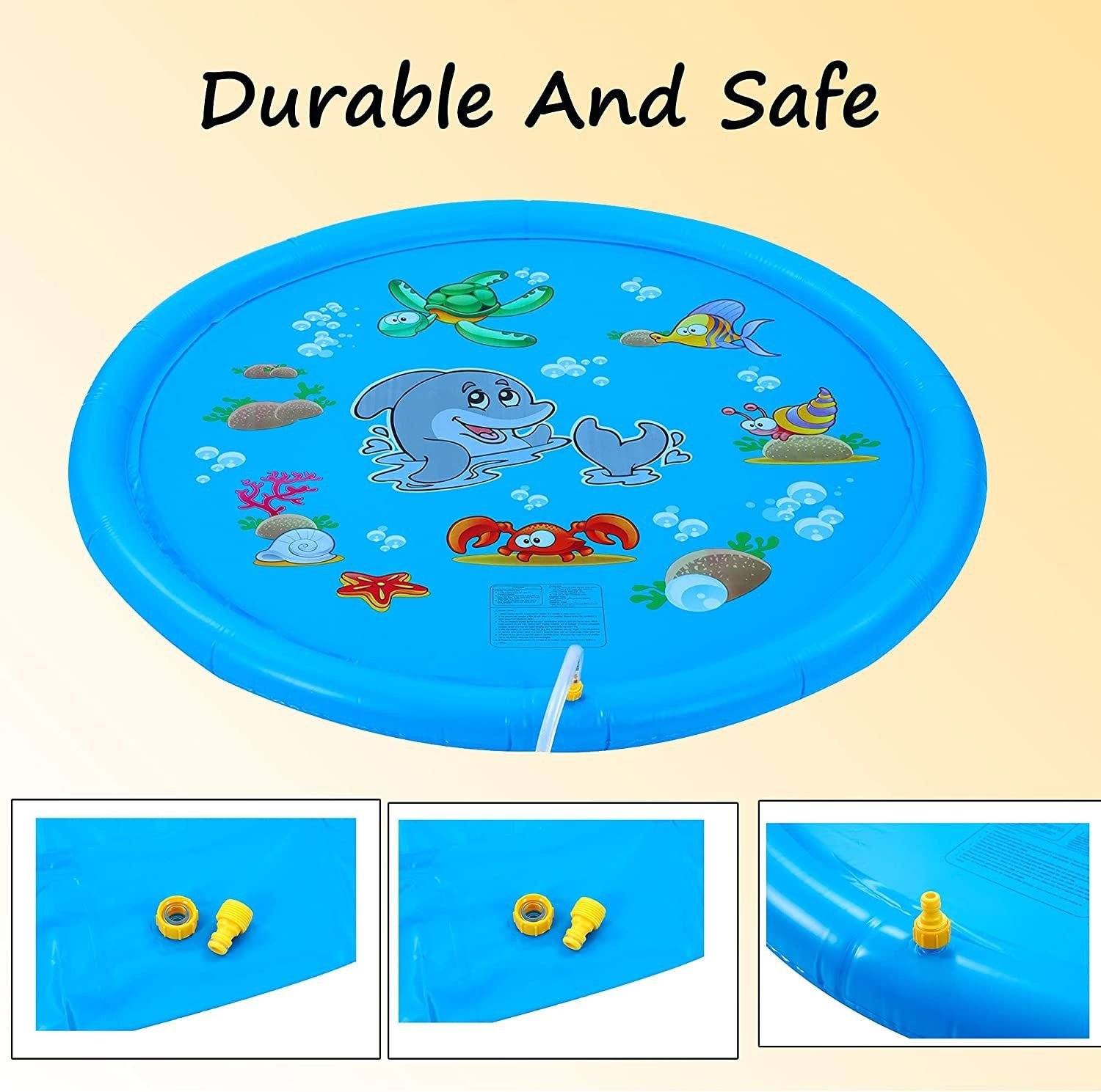 • Easy to Set Up Splash Pad— Just plug it to a garden hose or PVC tubing, simply adjust water pressure to lower or higher the spray height