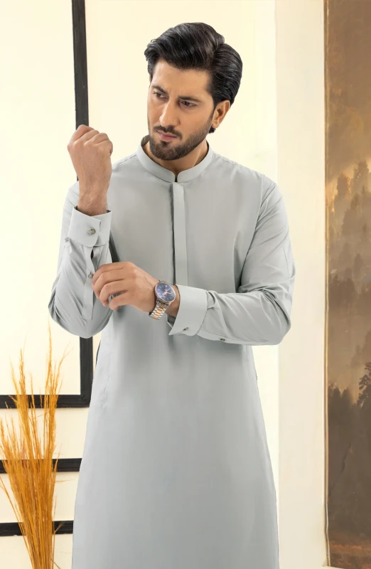 SUMMER'25 MEN KAMEEZ SHALWAR SILVER GREY