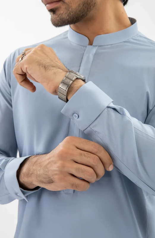 SUMMER'25 MEN KAMEEZ SHALWAR STONE BLUE