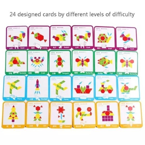 • Wooden Jigsaw Puzzle Creative shape Puzzle Games Brain Training Educational Toys Children Learning Kids Developing Toys Montessori Preschool STEM Educational Gift Toys For Kids Early Educational Toys (155 Pcs Wooden Patterns & 24 Puzzle Cards