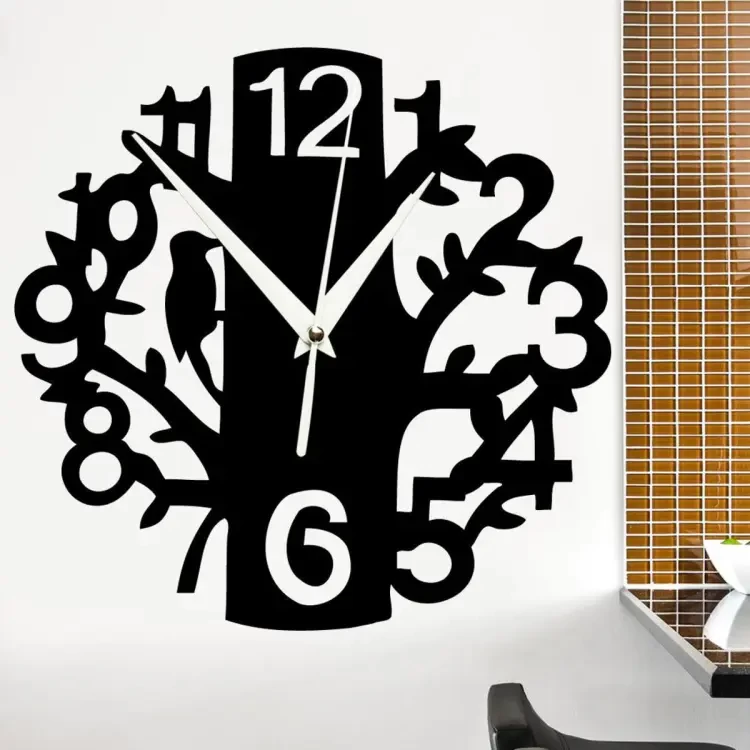 Wooden Wall Clock Modern Style 3D Laser Cut