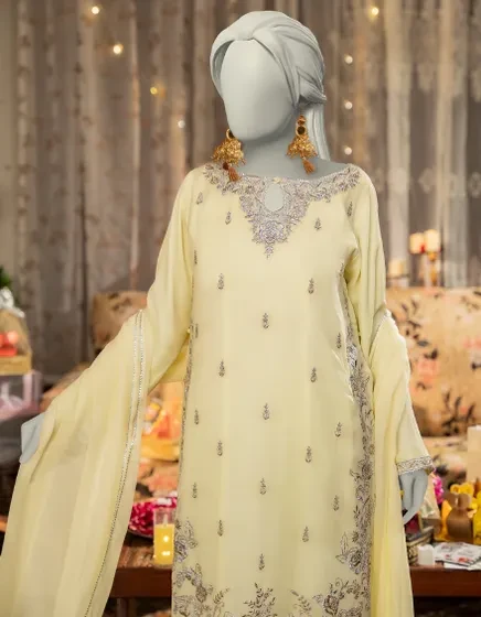 Collection: Dyed Embroidered Bamber Chiffon Shirt, Dyed Maple Silk Lining, Dyed Maple Silk Trouser, Dyed Embroidered Bamber Chiffon Dupatta